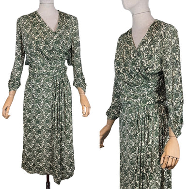 Original 1940's CRESTA SILKS Green and White Rayon Jersey Day Dress - Bust 38