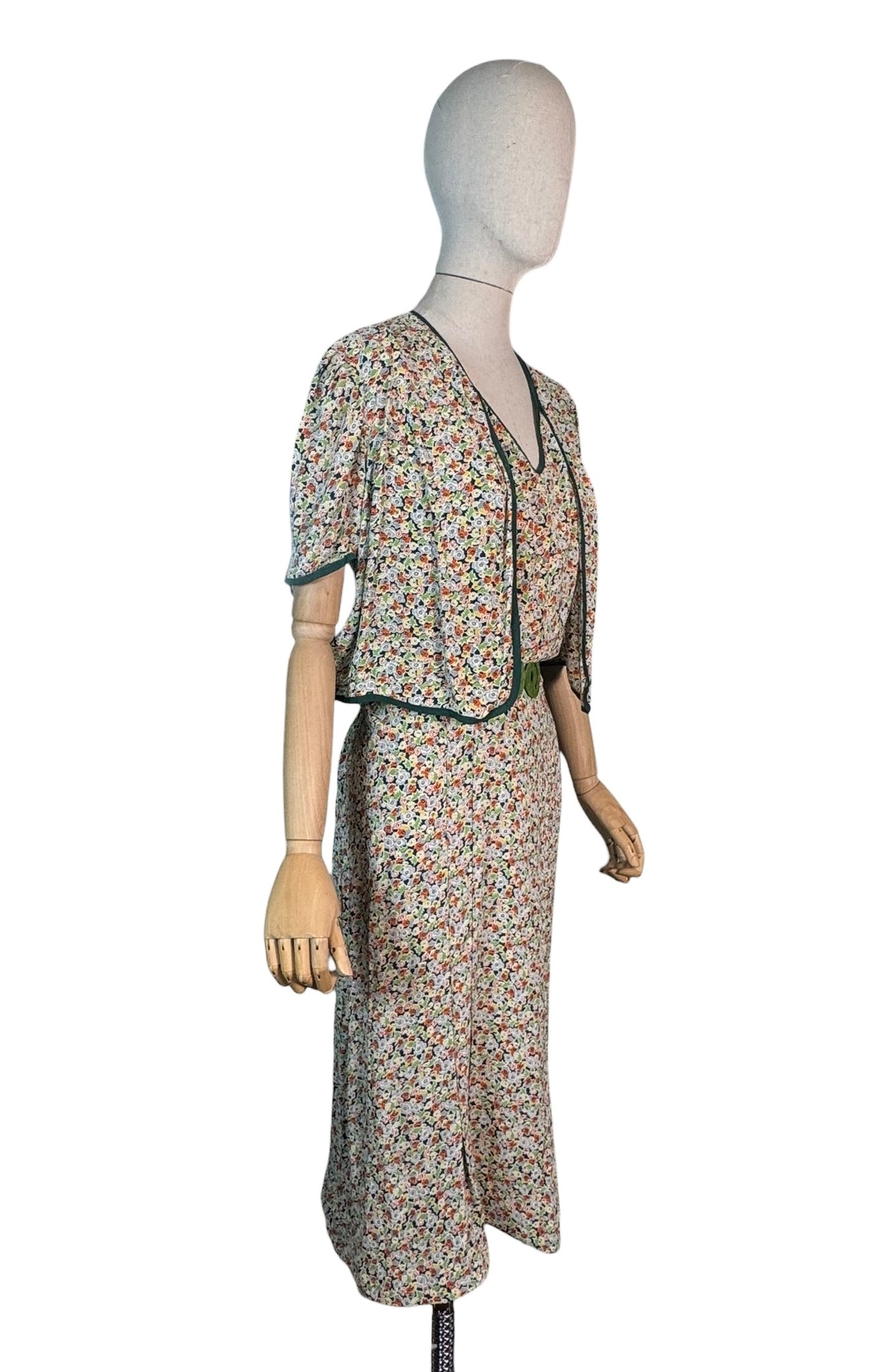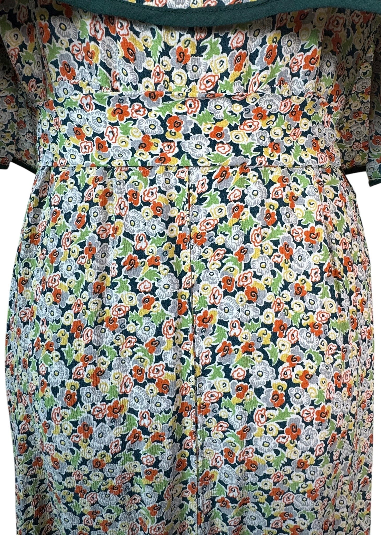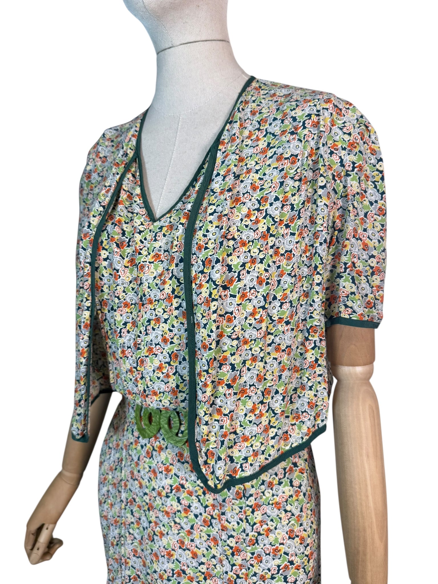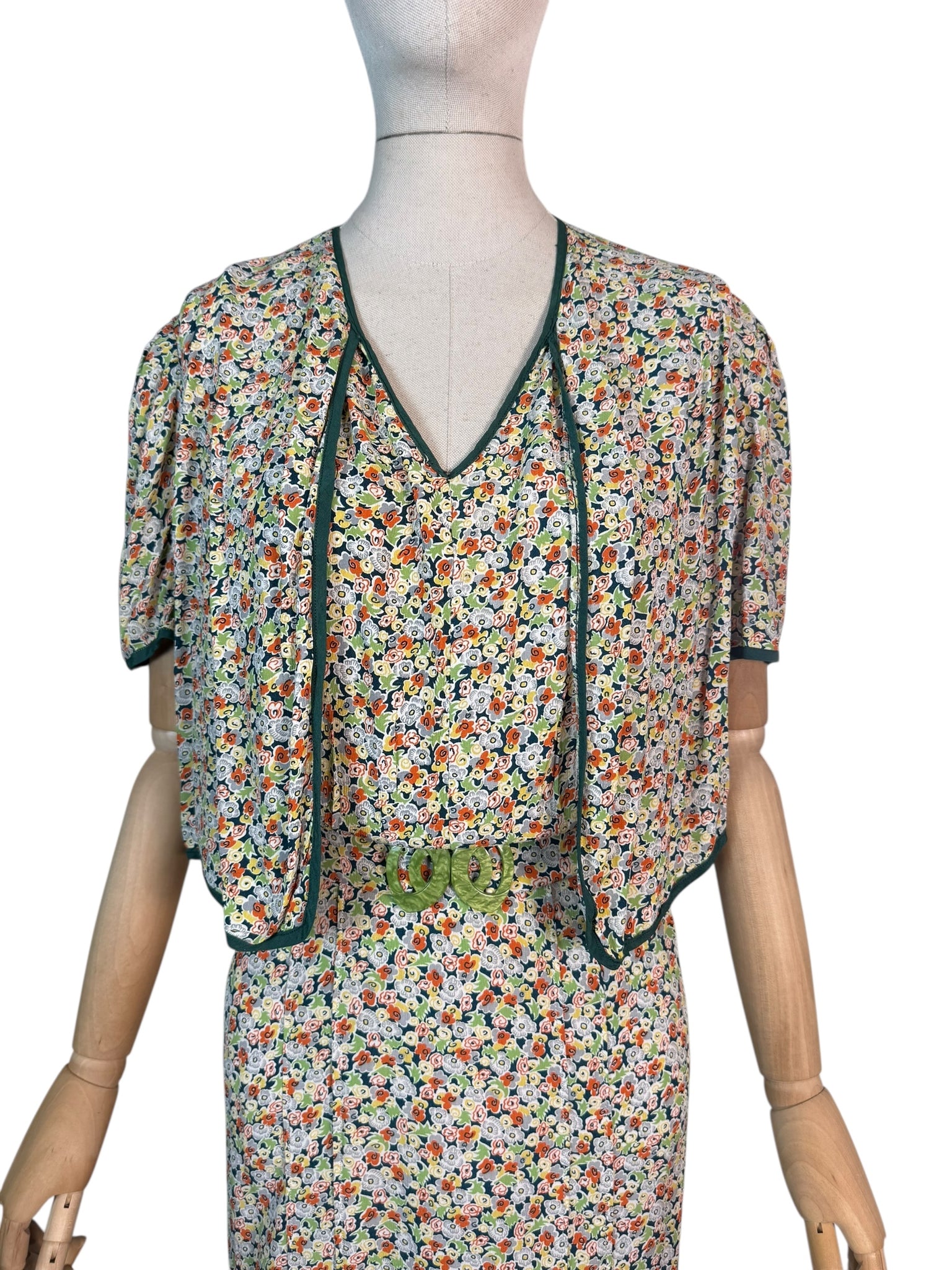 This pretty day dress with faux bolero detail was made in the 1930's.