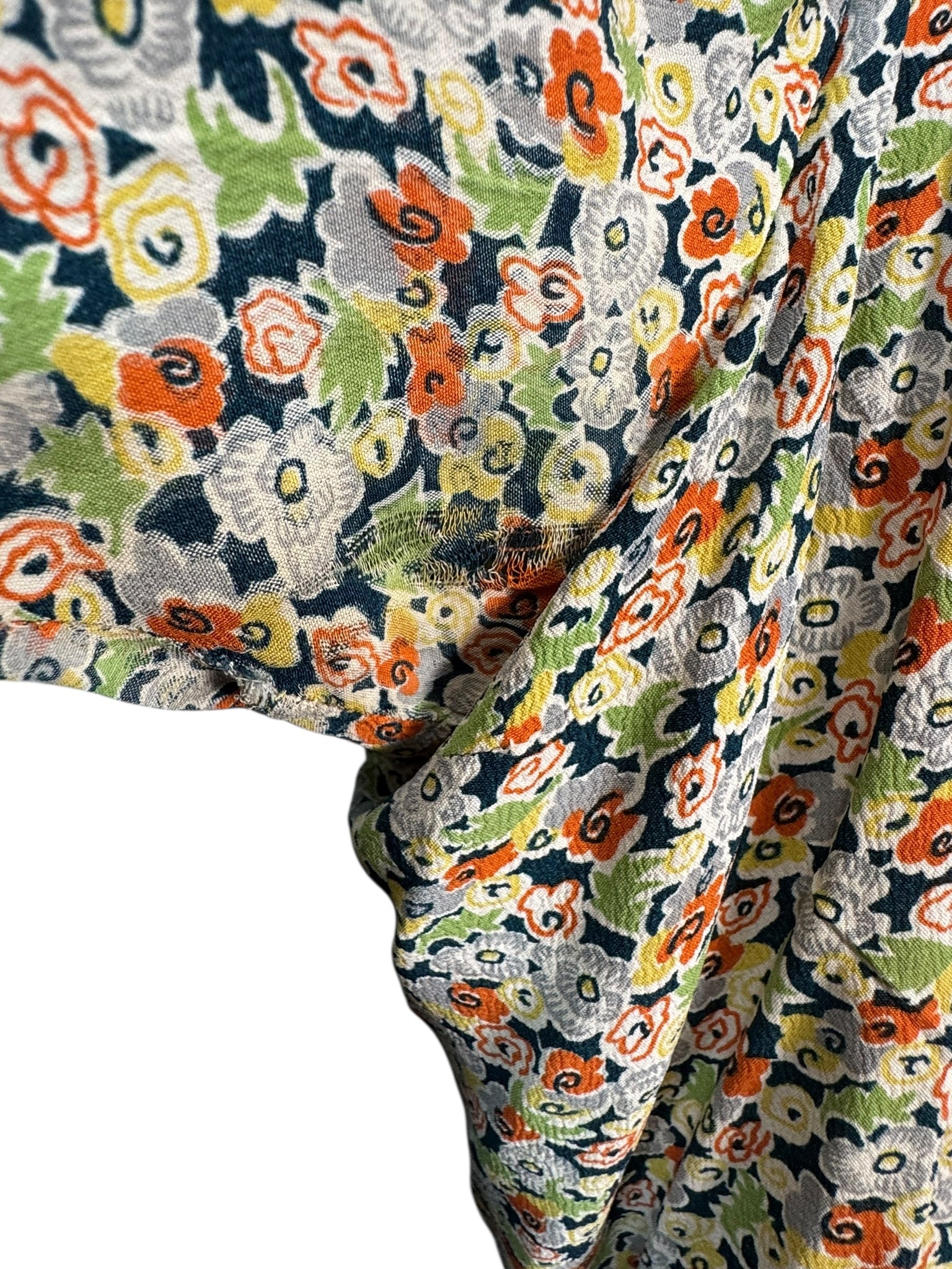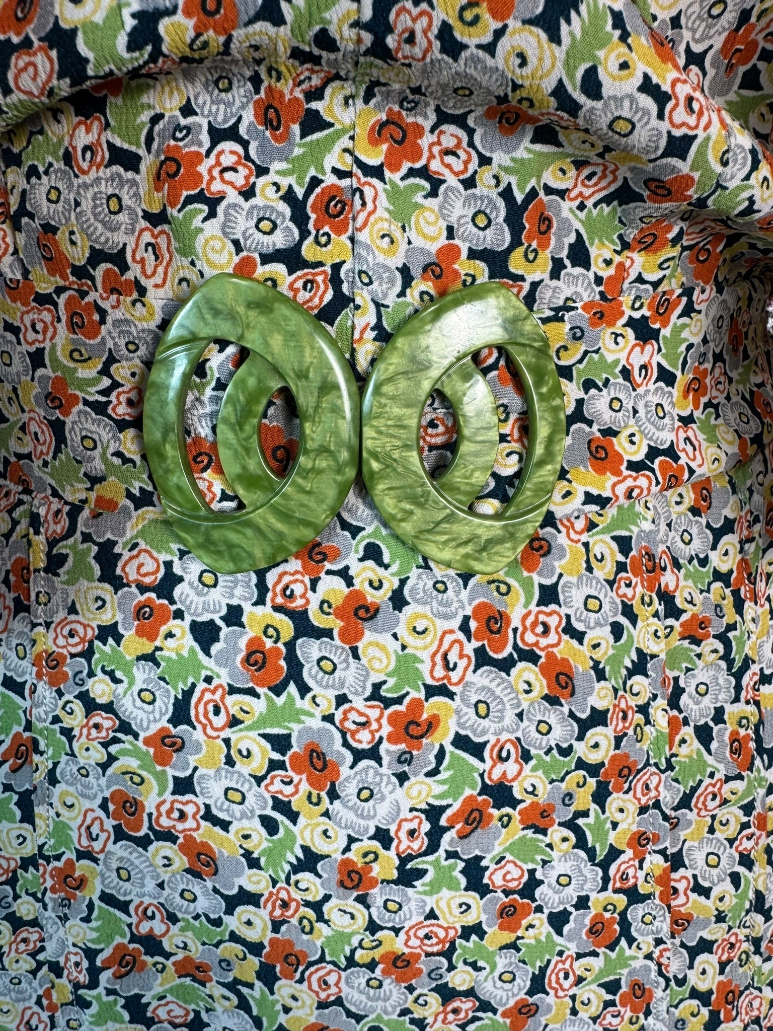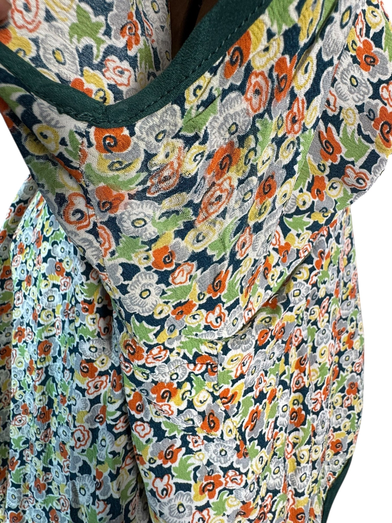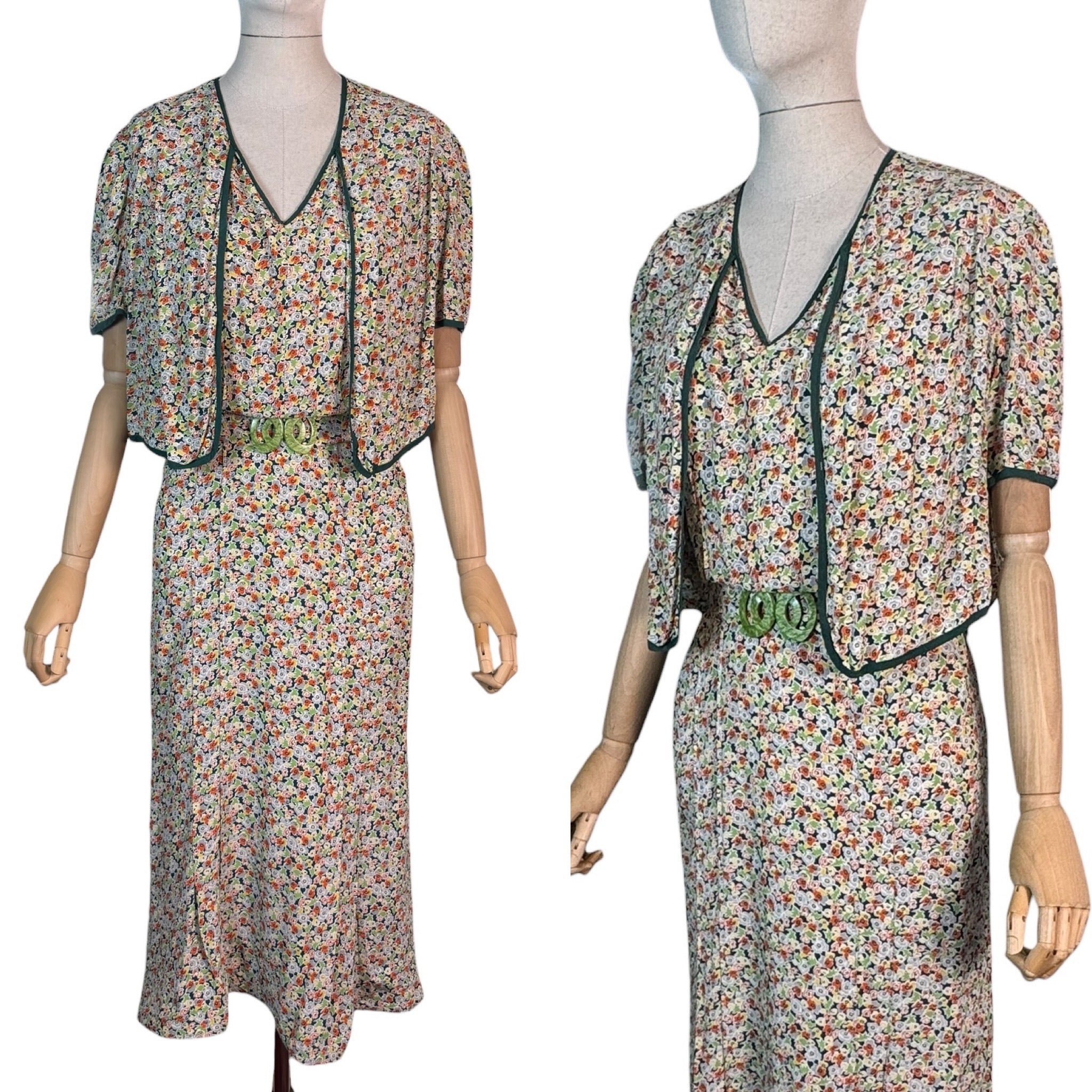 This pretty day dress with faux bolero detail was made in the 1930's.