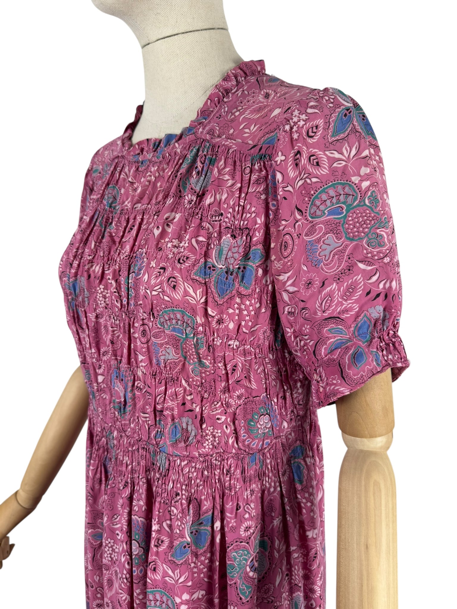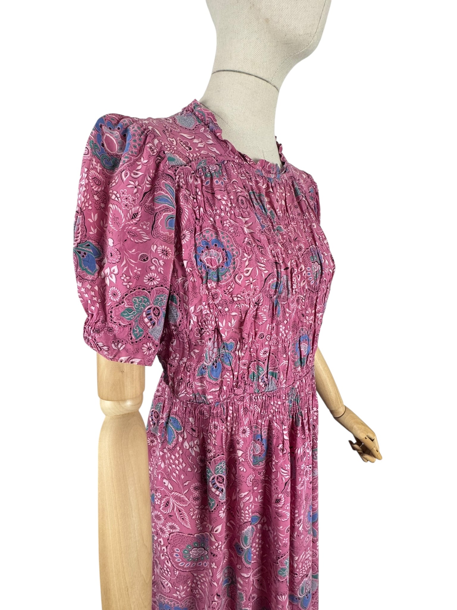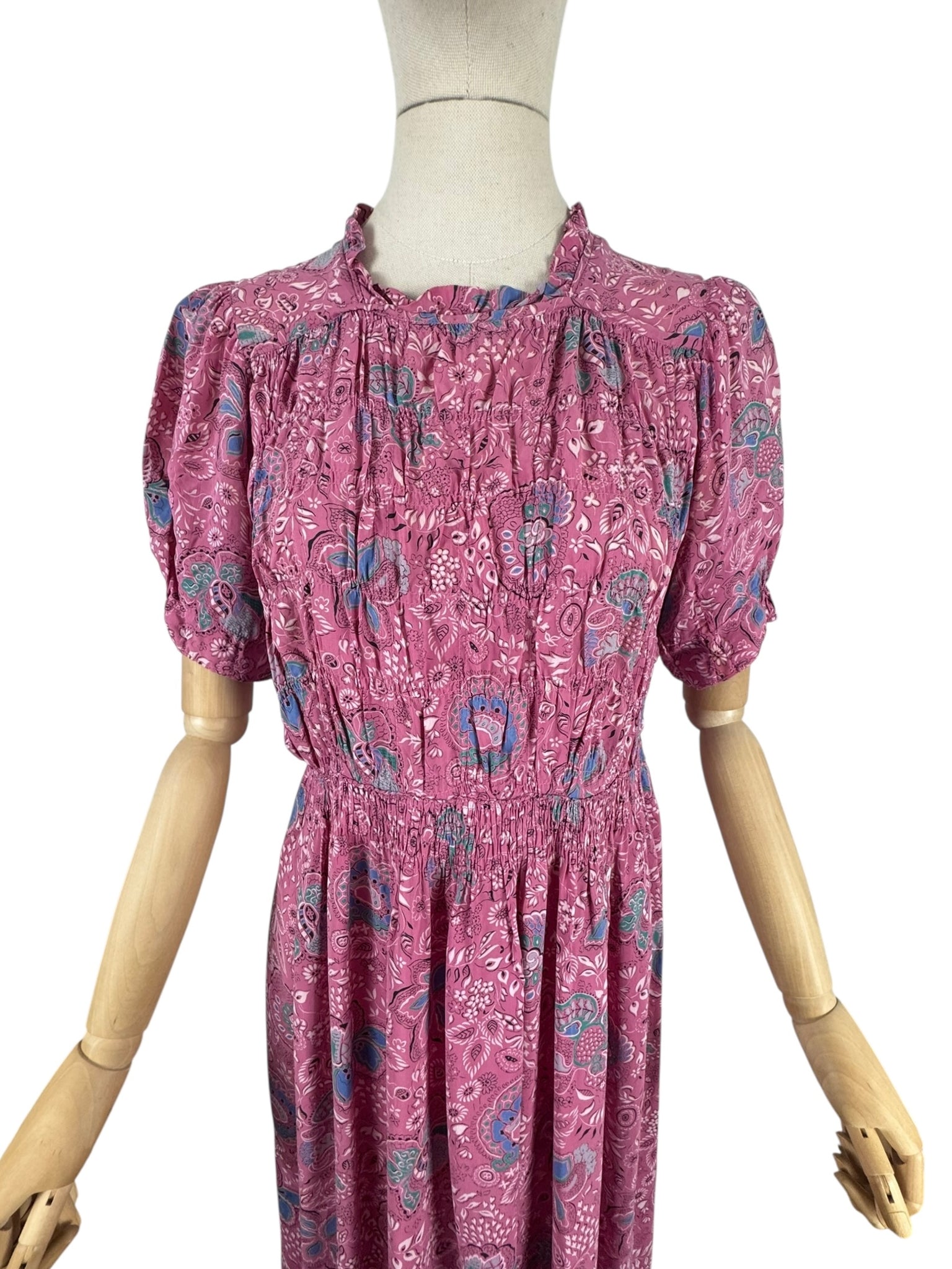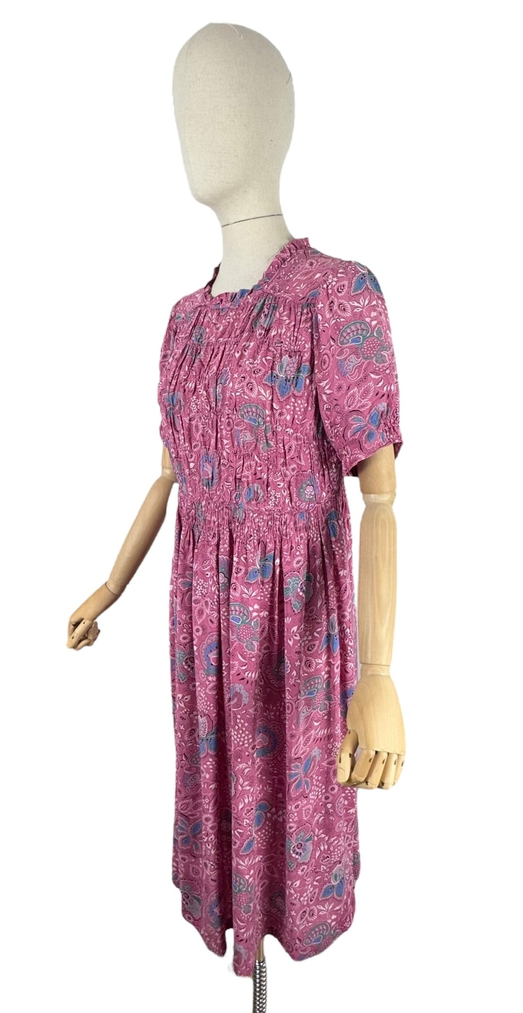 Original Late 1930's or Early 1940's Pretty Pink Cold Rayon Floral Day Dress - Bust 34 36 *
