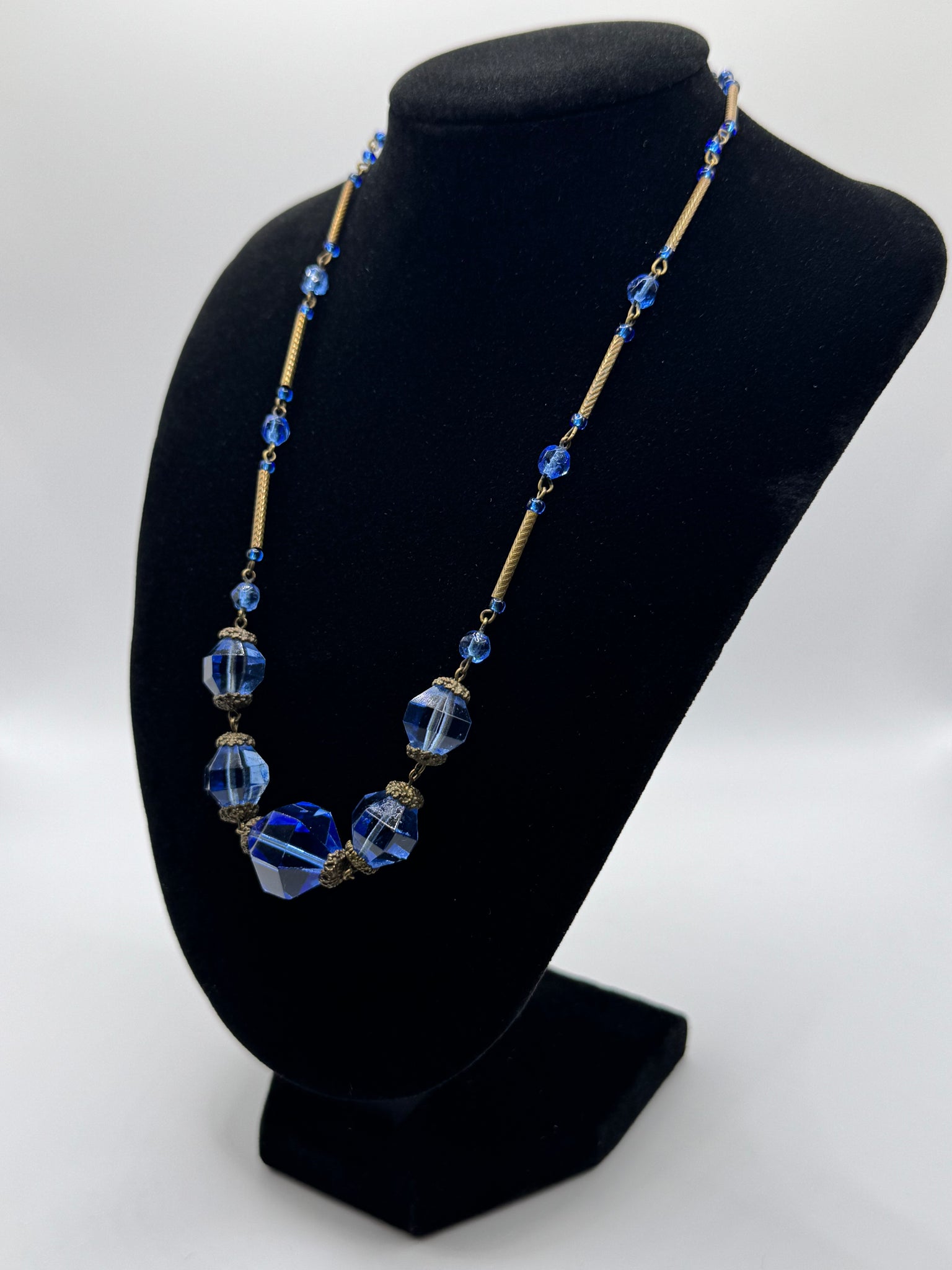 Original 1930's Art Deco Blue Faceted Glass Necklace