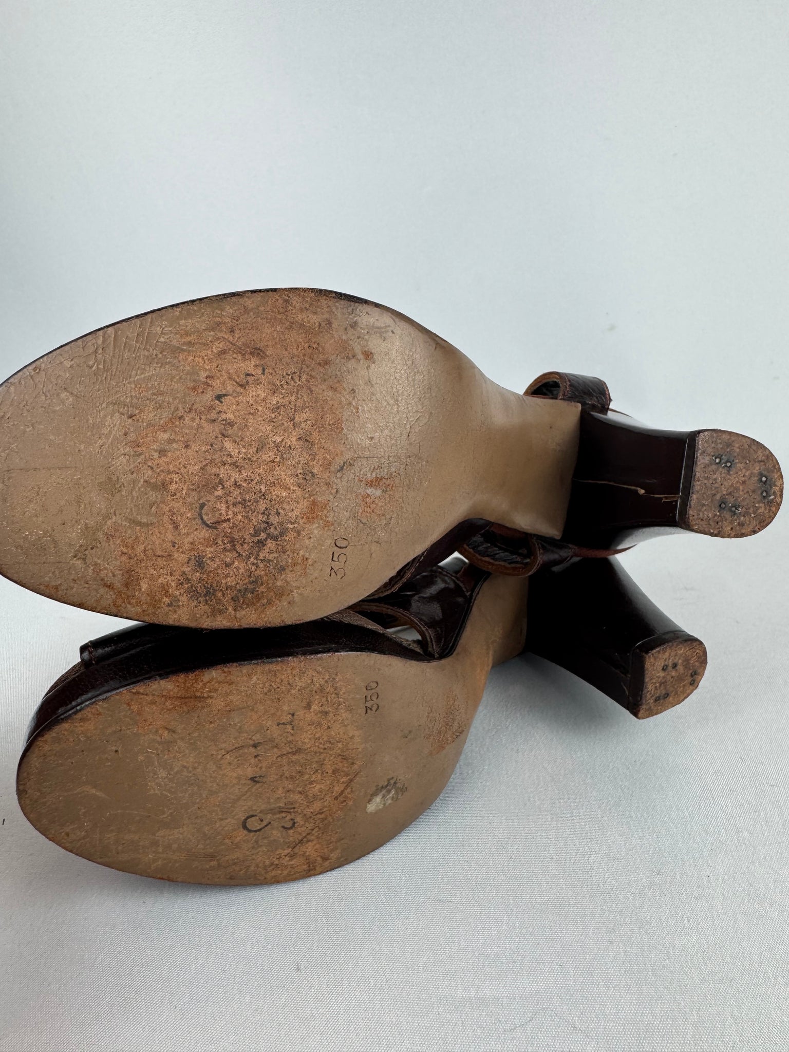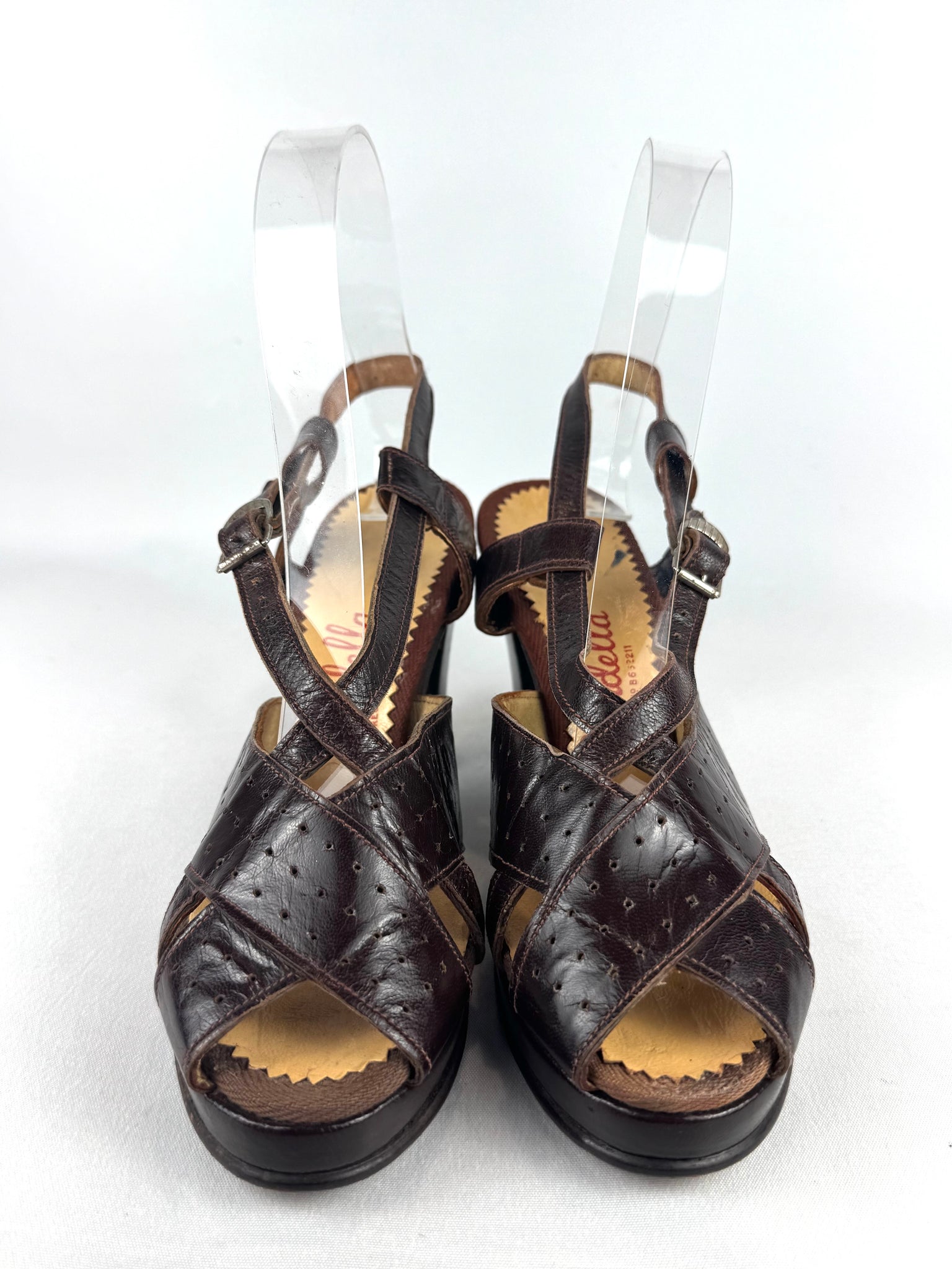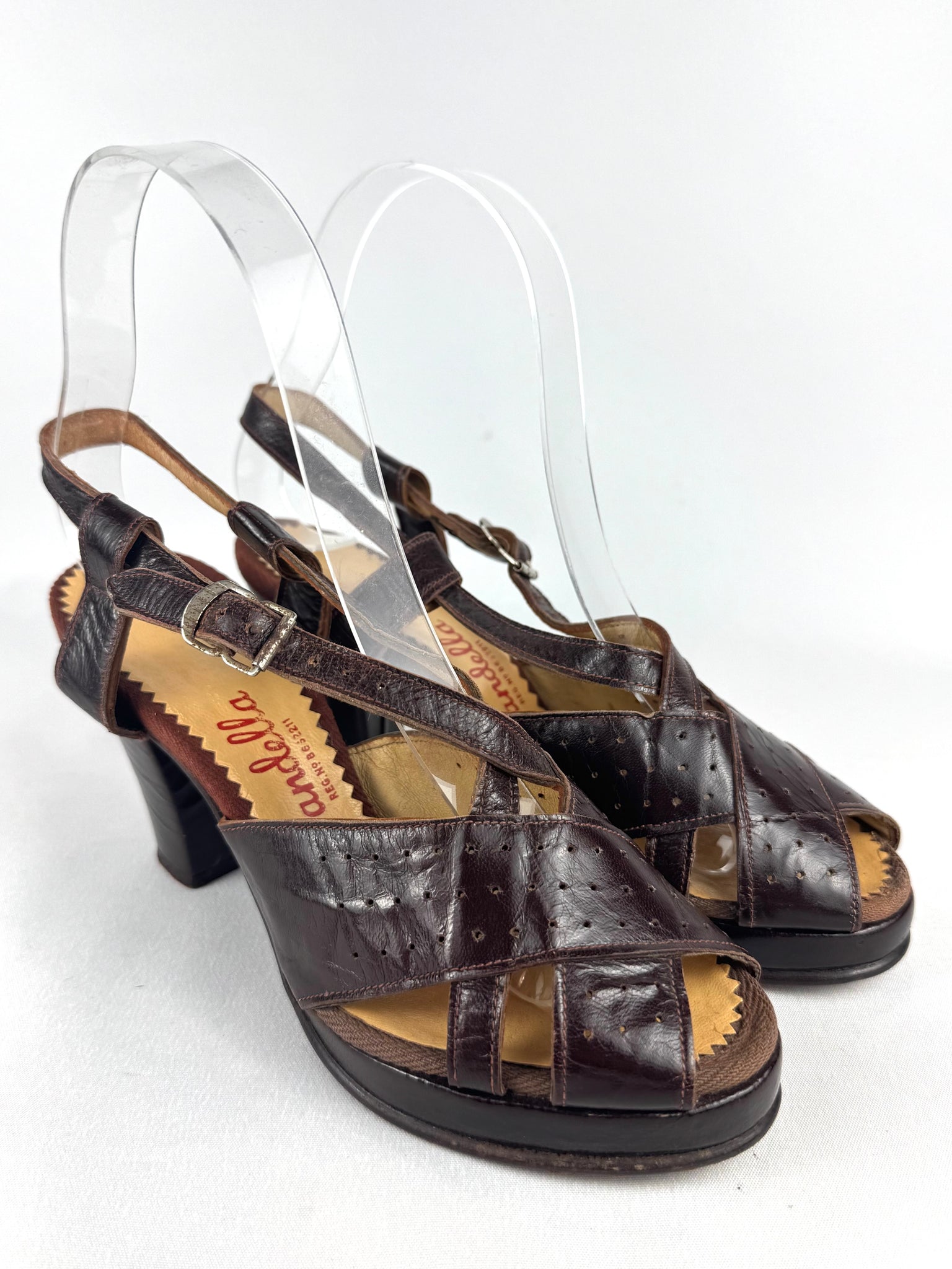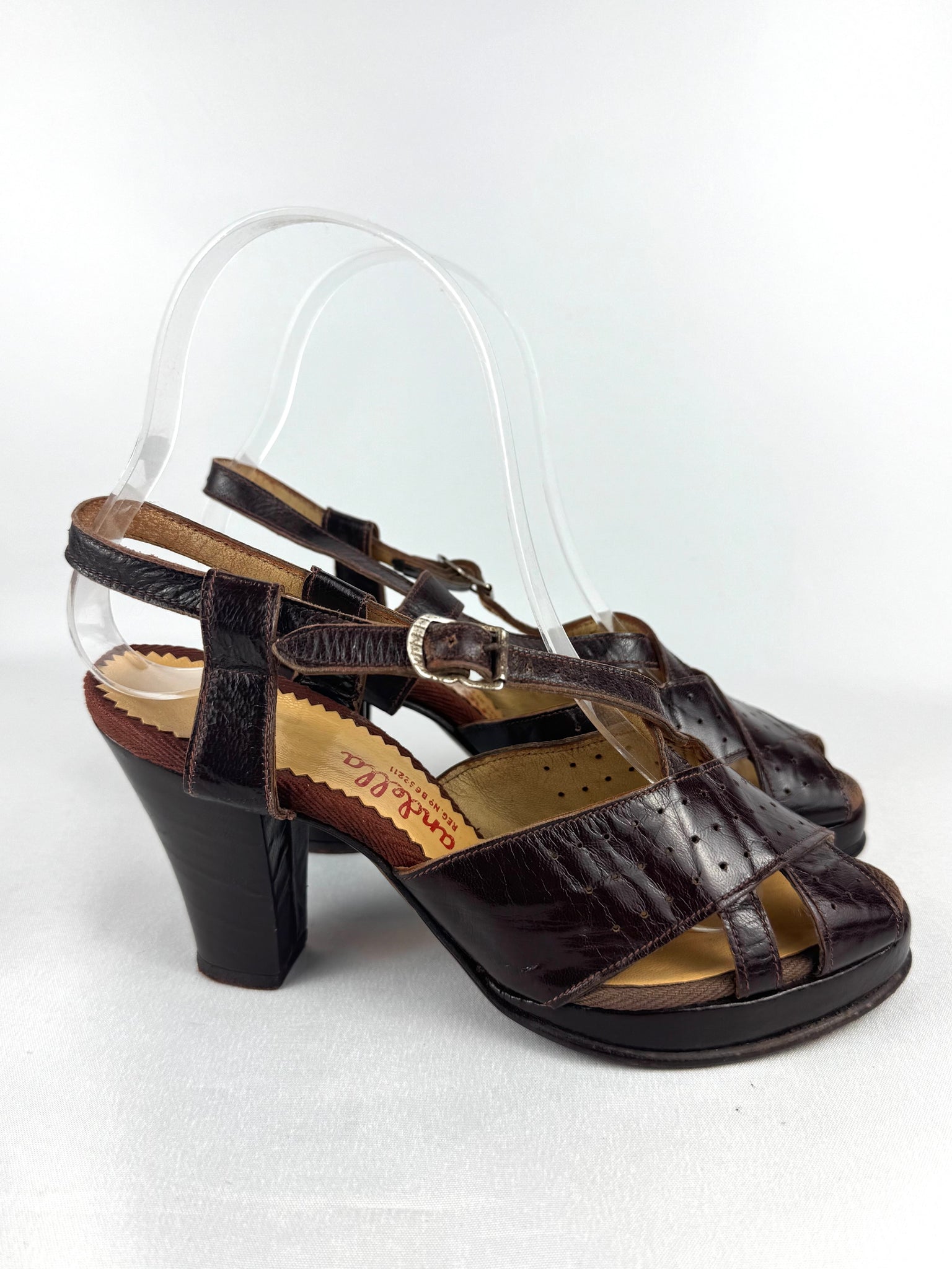 These pretty little shoes were made in the 1940's by Sandella and carry the CC41 stamp on the inner lining.
