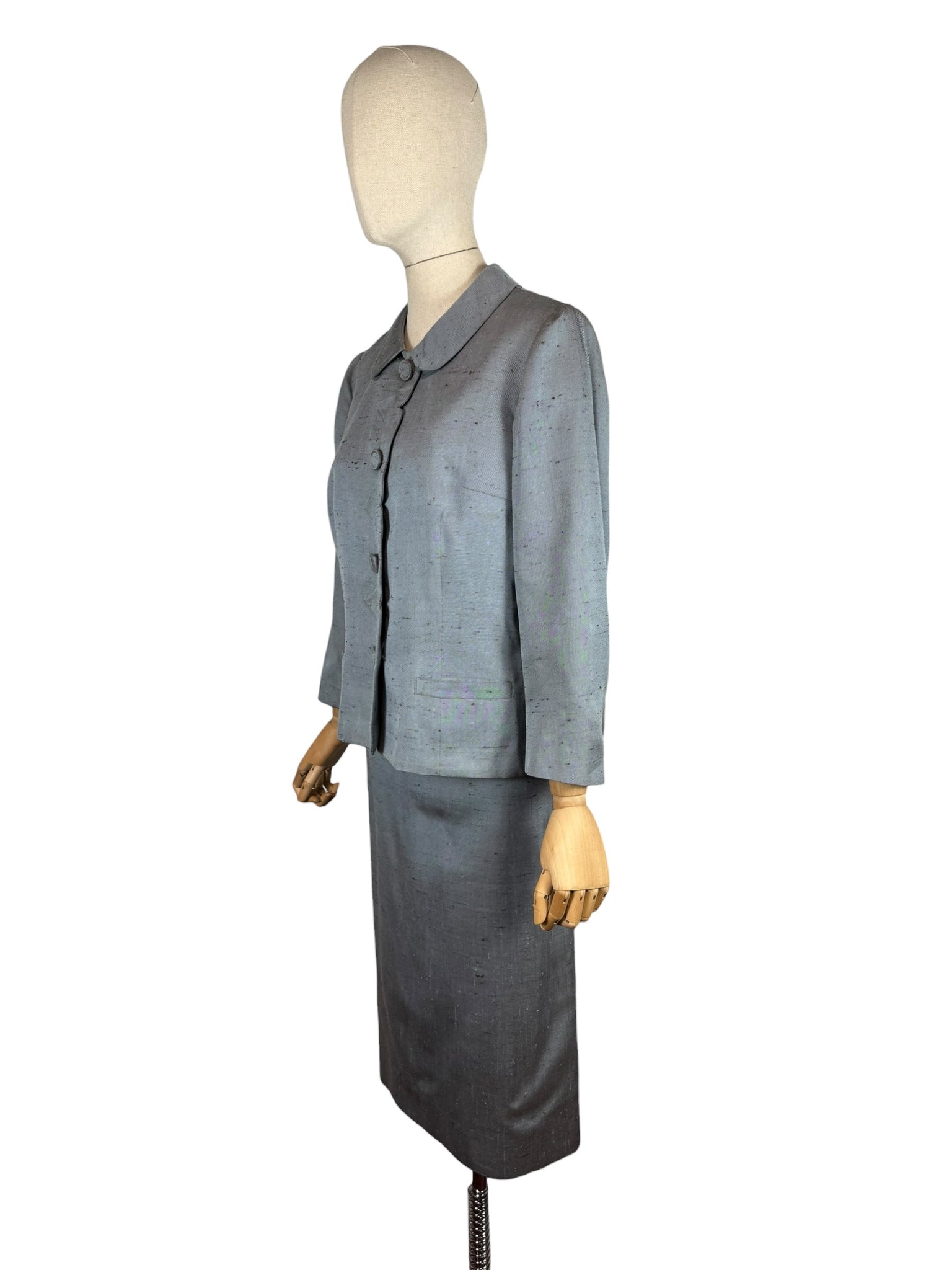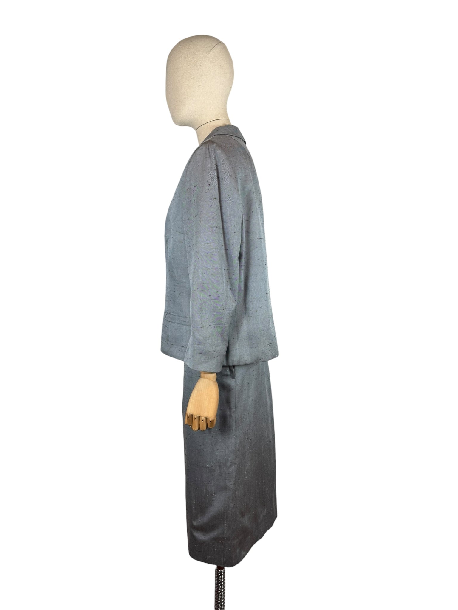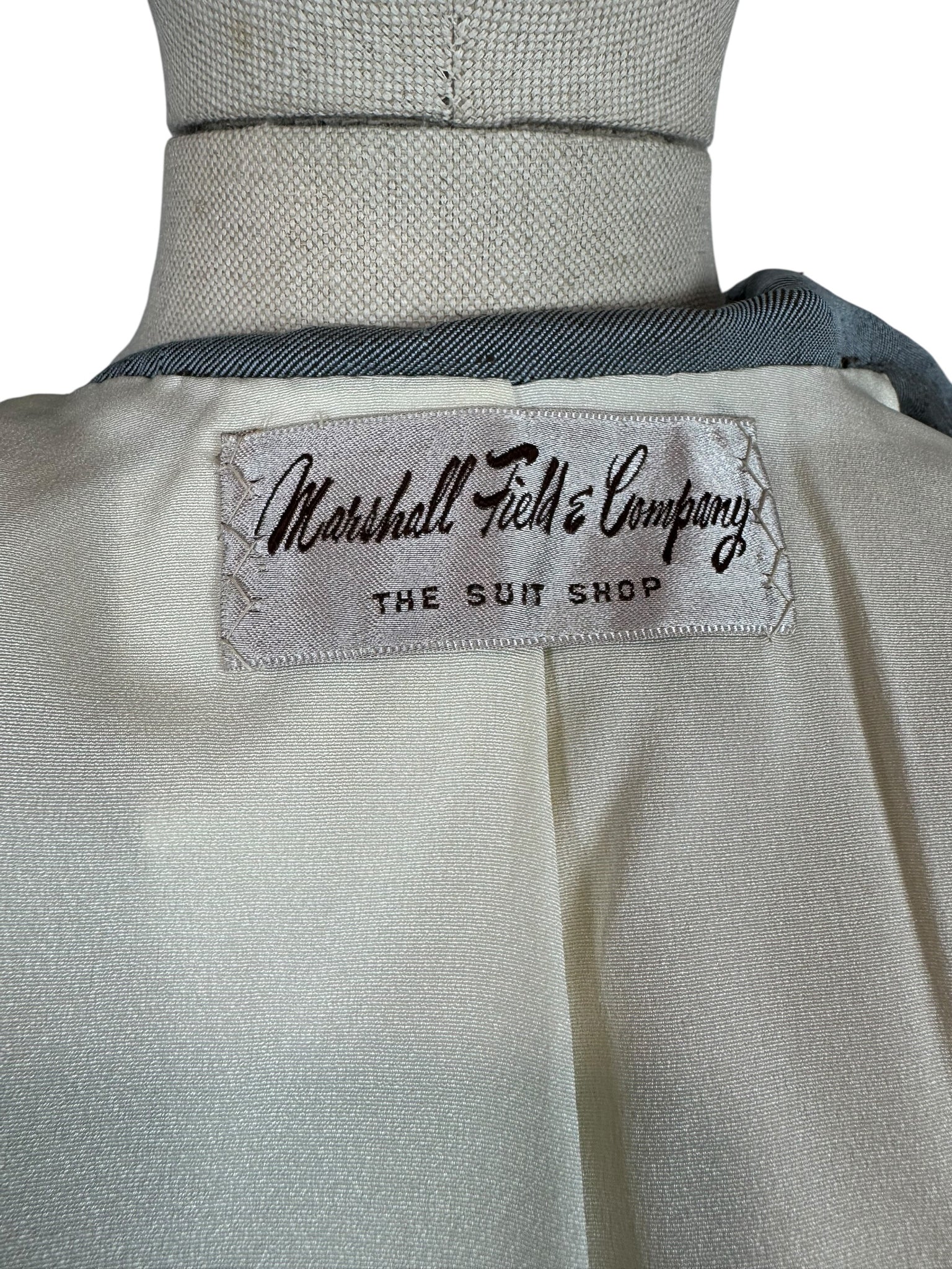 This smart two piece skirt suit was made in the 1950's and is labelled 'DAVIDOW Marshall Field & Company The Suit Shop'.
